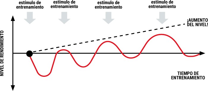 Esto lleva al cuerpo a super compensar para cuando tenga que enfrentarse otra vez a este nuevo esfuerzo durante la actividad física.